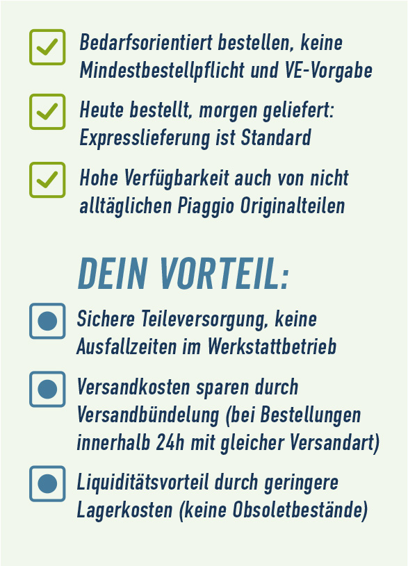 Über 110.000 Teile auf 7.600 qm: Das weltweit größte Teilelager von Piaggio Originalteilen im Herzen von Europa.